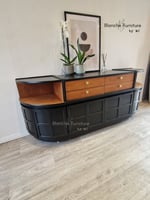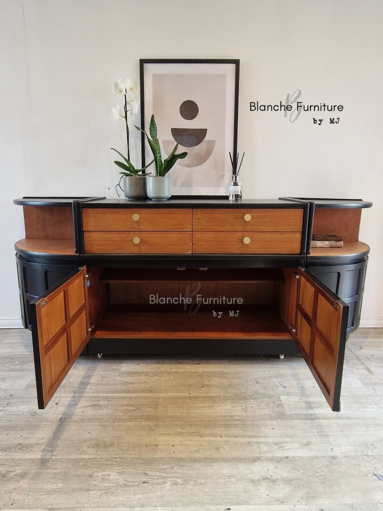Large Mid Century Luxury Sideboard Nathan | Curved Teak Sideboard Black | 4 Walnut Drawers