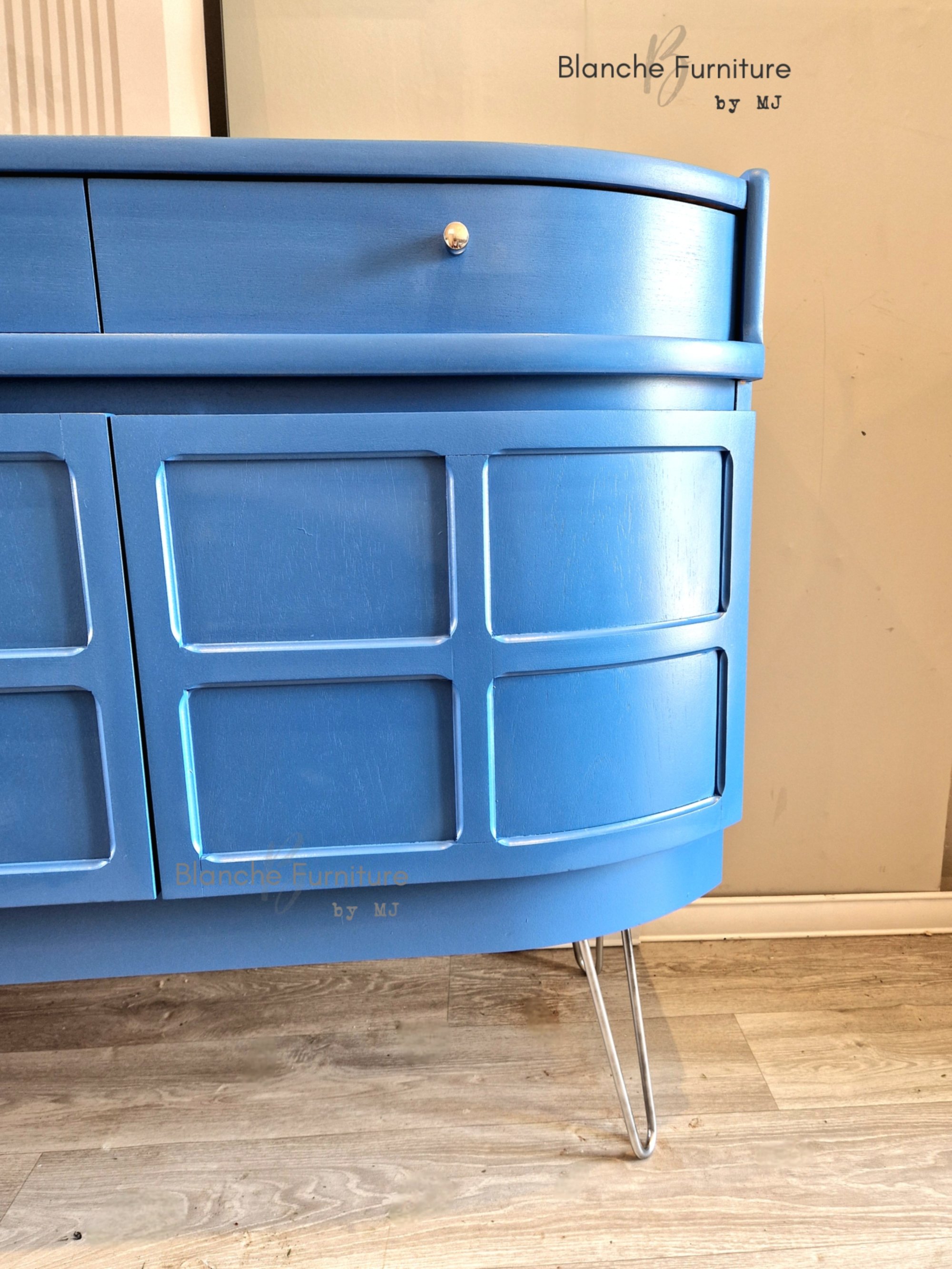This sideboard has been professionally hand painted in a vibrant Blue and sealed with layers of varnish for protection against every day usage.