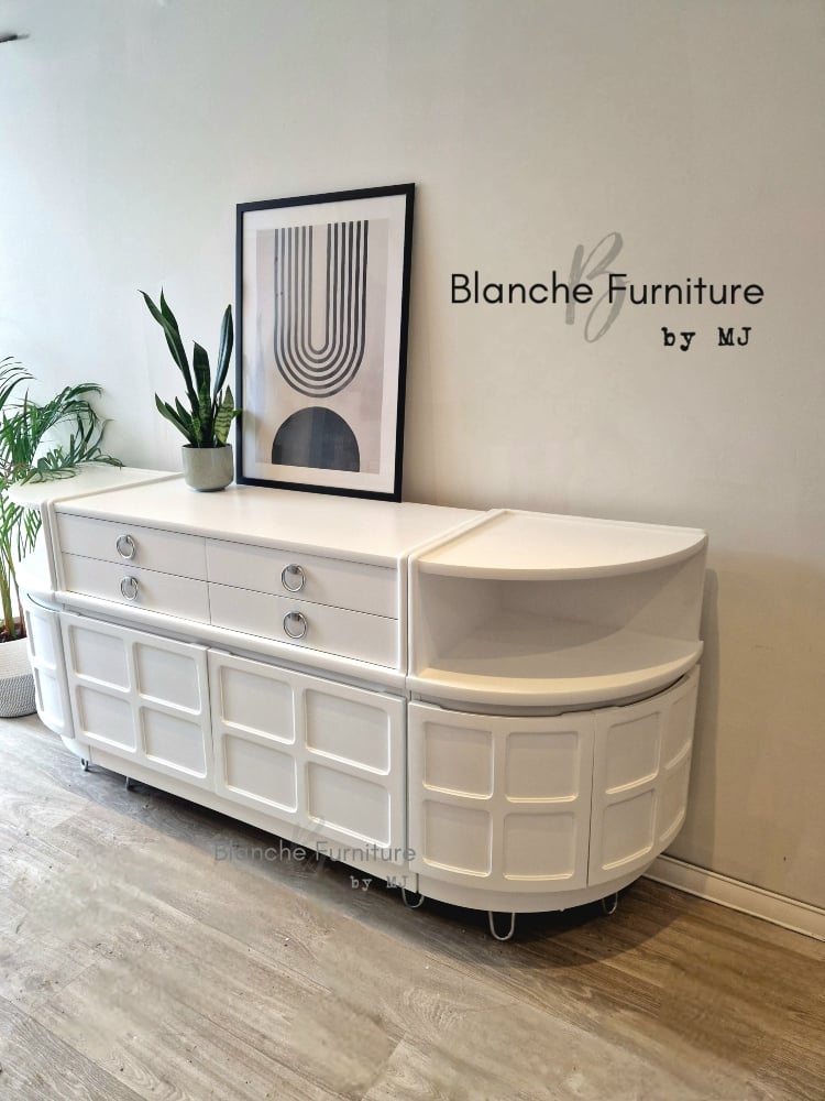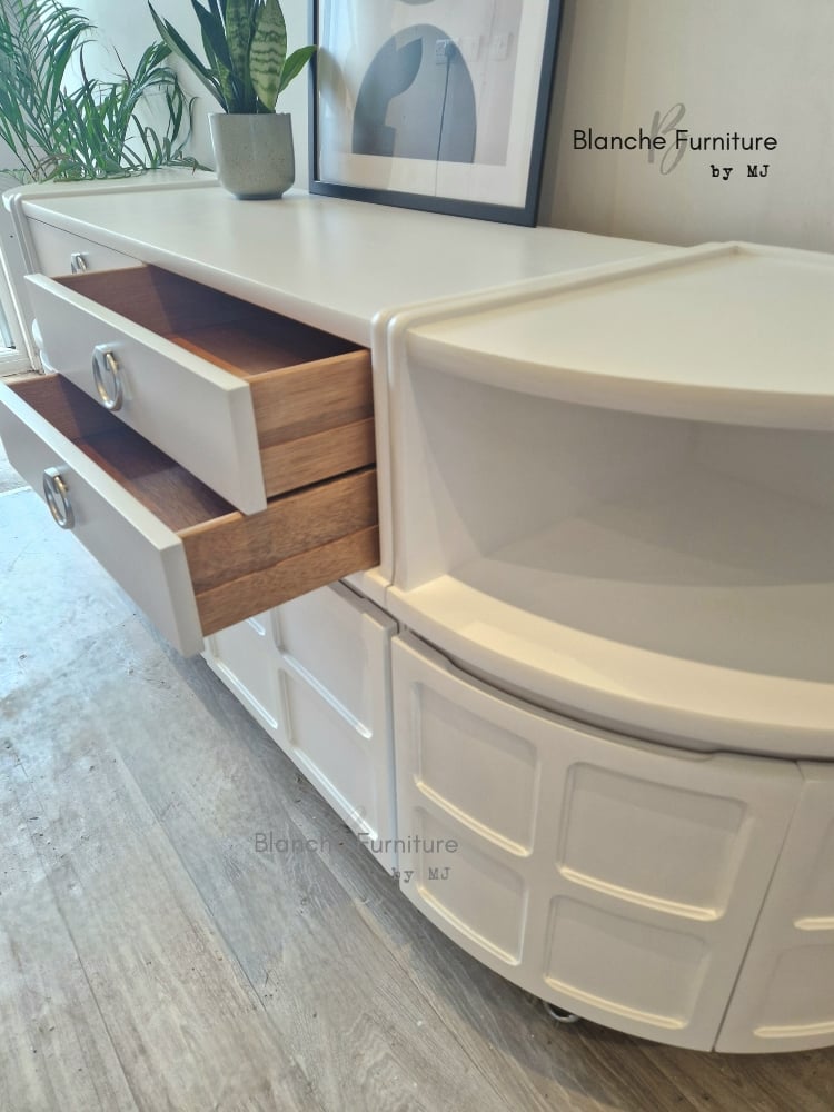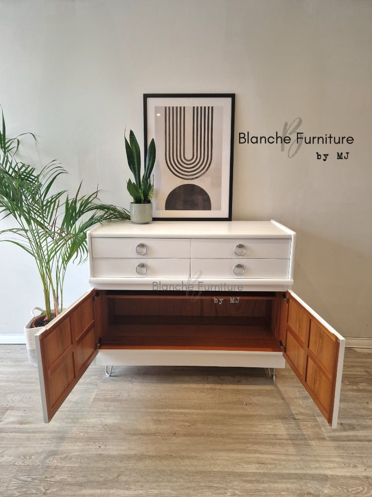 Large Mid Century Luxury Sideboard Nathan | Curved Teak Sideboard White