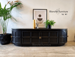 Long Curved Nathan Sideboard in Black with gold handles
