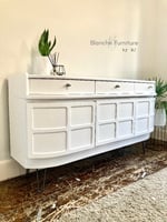 This sideboard has been professionally hand painted in a Brilliant White and sealed with layers of varnish for protection against every day usage.