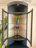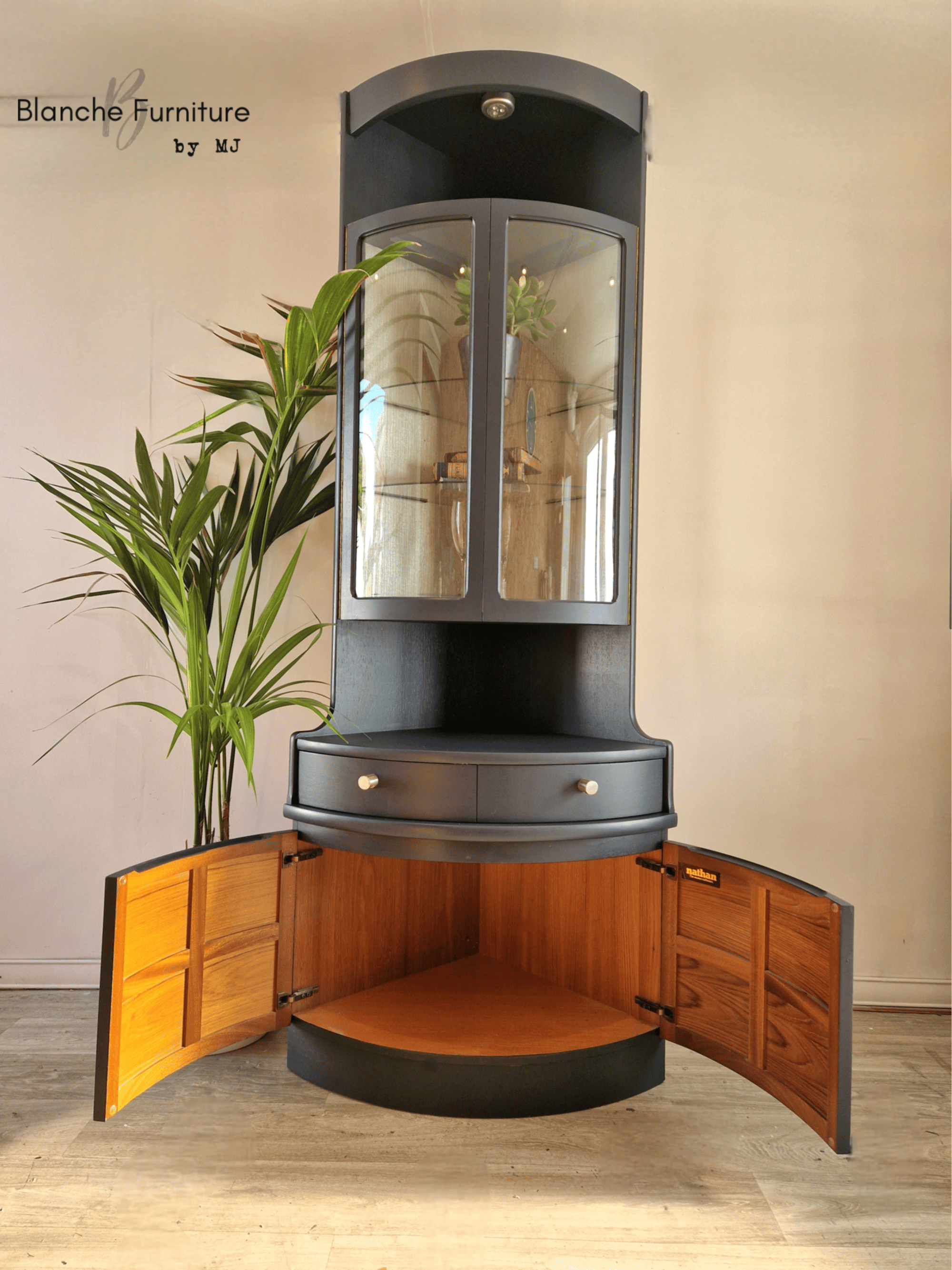 Tall, Mid Century Nathan Corner Drinks Cabinet unit with light - Midnight Blue