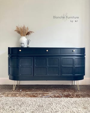 This sideboard has been professionally hand painted in a Jet black and sealed with layers of varnish for protection against every day usage.