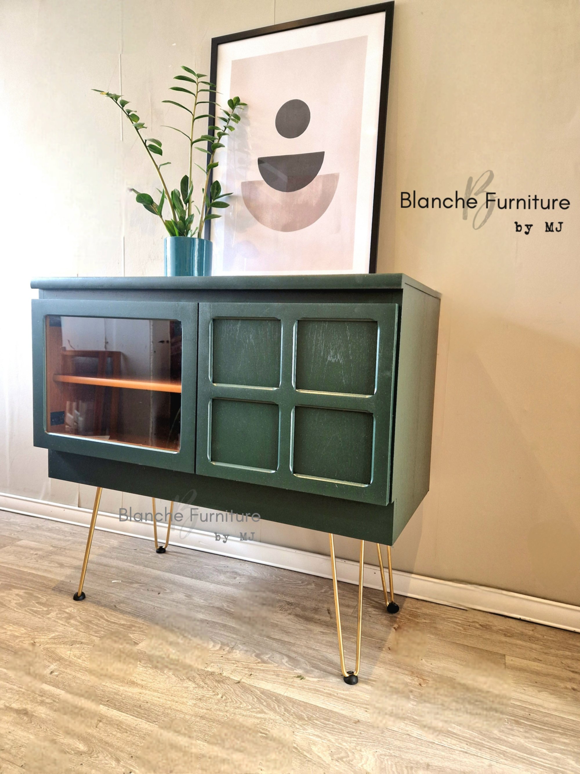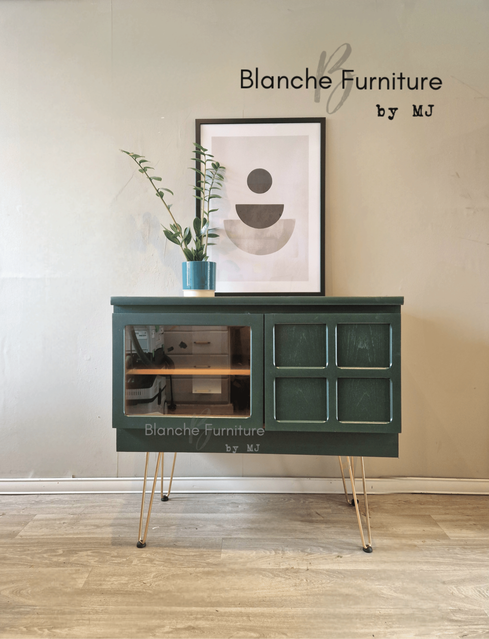 TV / Media Sideboard in Emerald Green on Hairpin legs, by Nathan